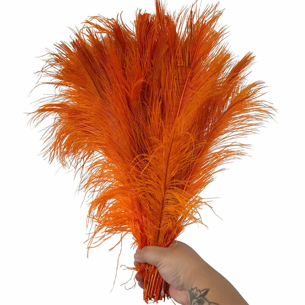 Plumas de avestruz tipo espigão-palito, bem maleáveis, tingidas com corante atóxico. Podem haver falhas na plumagem.